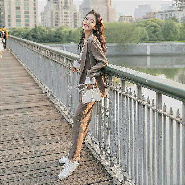 長めのジャケットとハイウエストパンツで着痩せ効果も狙えます♪