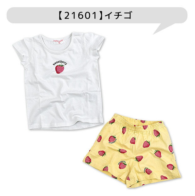 クリアランス★【送料無料】 POPS LEMON 2点セット 半袖Tシャツ パンツ Tシャツ 半袖 短パン 上下セット セットアップ ショートパンツ キッズ 女の子 100cm 110cm 120cm 130cm トップス パンツ 上下セット キッズ 可愛い おしゃれ イチゴ レモン 総柄 ルームウエア