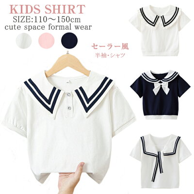 子供 キッズ ブラウス 女の子 半袖 120 130 140 150 夏服 セーラー風 ビッグ襟付き フォーマル ブラウス 白 シャツ おしゃれ リボン付 女の子 子ども ガールズ 紺 ネイビー ピンク ジュニア シャツ 入学式 卒園式 入園式 子供服 トップス ブラウス 可愛い オシャレ 通学