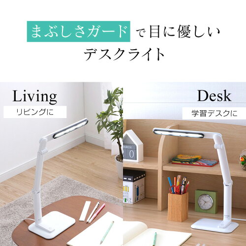 「まぶしさガード」採用で、手元は明るく、光源はまぶしくない、目にやさしいLEDデスクライトです。
