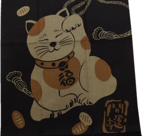手拭い てぬぐい 和柄 縁起 日本製 こげ茶色地福招き猫ねこネコ 綿 メンズ 男性用 女性用 レディース 着物 浴衣 開運亭