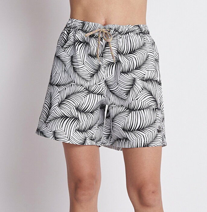 脚やヒップラインを美しく見せるきれいなシルエットが魅力のミドル丈のボードショーツです。