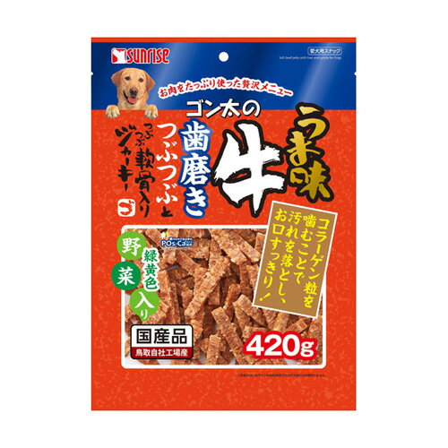 マルカン サンライズ ゴン太のうま味牛 歯磨きつぶつぶとつぶつぶ軟骨入りジャーキー 緑黄色野菜入り 420g