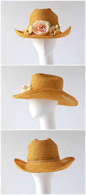 \クーポンで2000円OFF/ 【Grevi 麦わら帽子】 グレヴィ ブランド ストロー ハット つば広 中折れ 帽子 テンガロンハット バラ 花 コサージュ リボン UV 夏 夏用 夏帽子 レディース ツバ広 UVカット 紫外線防止 日よけ おしゃれ イエロー【送料無料】