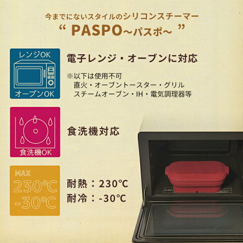 tone (トーン) PASPO(パスポ) 折りたたみ シリコンスチーマー Information ブランド tone (トーン) 商品名 PASPO(パスポ) 折りたたみ シリコンスチーマー 素材 シリコーンゴム 耐熱/耐冷温度:230℃/-30℃ ★