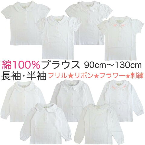 【メール便送料無料】綿100%ブラウス長袖・半袖 カットソーブラウス 子供服 女児 女の子 キッズ 綿100% フォーマル レース 丸襟 園服 制服 通園 通学 入学式 入園式 卒業式 卒園式 小学校 小学生 幼稚園 保育園 白 冠婚葬祭 結婚式 100cm 110cm 120cm 130cm