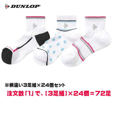 ■送料無料■【DUNLOP】ダンロップテニス TPO6144W-499 ソックス3Pセットハーフ[アソート][テニス/ソフトテニス/ソックス/靴下/くつした/【3足組×24個セット=72足】/大会景品/部活/レディース/女性用]【※受注出荷ロット24個】【RCP】
