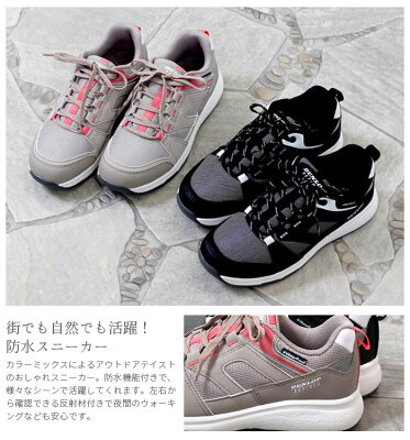 DUNLOP ダンロップ スニーカー レディース DU6501 防水 コンフォートシューズ 軽量 3E 幅広 グレー ブラック アウトドア カップインソール 反射 安全