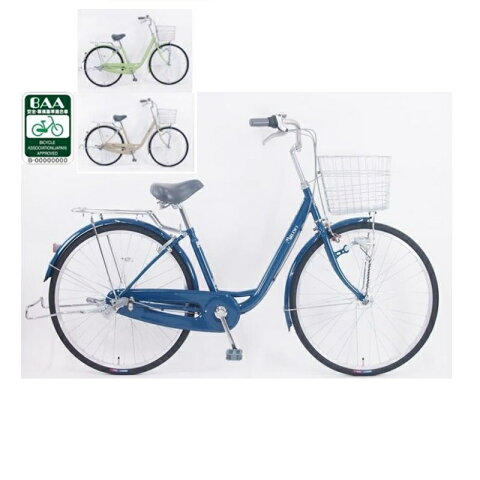 *タイヤ:26x1-3/8 WO 耐摩耗リムセーバー *フレーム :スチール *重さ:19.5Kg *ブレーキ:ローラーブレーキ *変速機 :シングル *ライト :LEDオートライト(NRS310) *キャリア :クラス27kg *カゴ :丸型ワイヤー:370*326*215mm *サドル :ソフトサドル *カラー :ブルーフランス、アーモンドグリーン、カフェラテ 適正身長:148cm以上 BAA規格適合車 ご注文のタイミング次第は、在庫終了となる場合がございます。