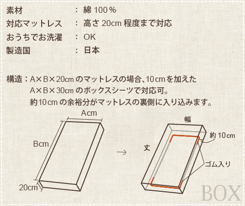 80×200×30 85×200×30 90×200×30 cmのセミシングルサイズ( セミシングル )のボックスシーツです。