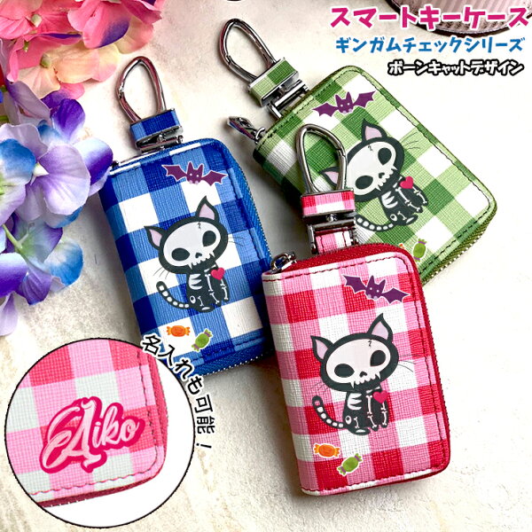 名入れ可能 ボーンキャット スマートキーケース ギンガムチェックシリーズ (全3色) +500円で名入れが可能です。