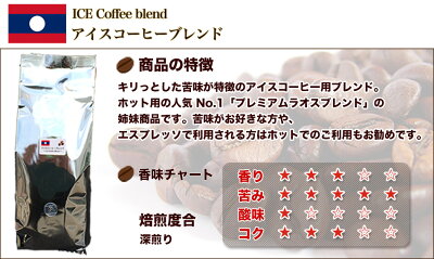 味のポイント キリッとした苦味が特徴のアイスコーヒー用ブレンド ホット用人気No.1プレミアムラオスブレンドの姉妹商品です。