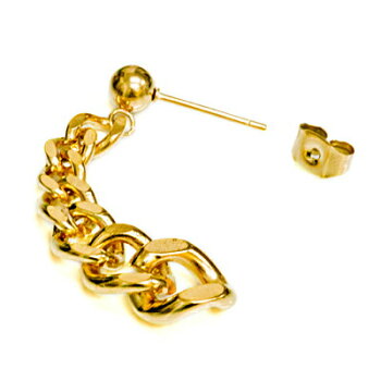 20G 1個売り ステンレス チェーン付きポストピアス / 20ゲージ ゴールド ロブ 鎖 シンプル 長い 片方売り ぶら下がる 金属アレルギー対応 喜平