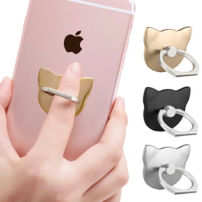 スマホリング バンカーリング おしゃれ 猫 ねこ かわいい メタリック ピンク シルバー ゴールド スマホスタンド ホールドリング リングスタンド リングストラップ リング 落下防止 スマホ 全機種対応 アクセサリー ケース Xperia Galaxy iPhone 7 SE ring スマートフォン