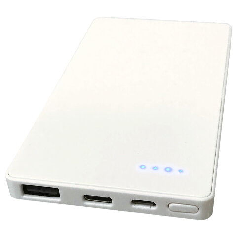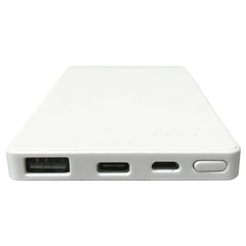 5000mAh モバイルバッテリー 0.9cmスリム Type-C対応 携帯用充電器ホワイト USBケーブル、タイプCアダプタ付属 L-M5C-W/0919 Lazos PSEマーク有